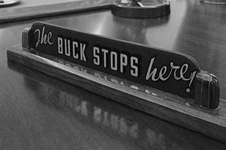 Eight decades ago, President Harry Truman placed a wooden sign on his Oval Office desk to publicly proclaim, “The Buck Stops Here.” For many years…